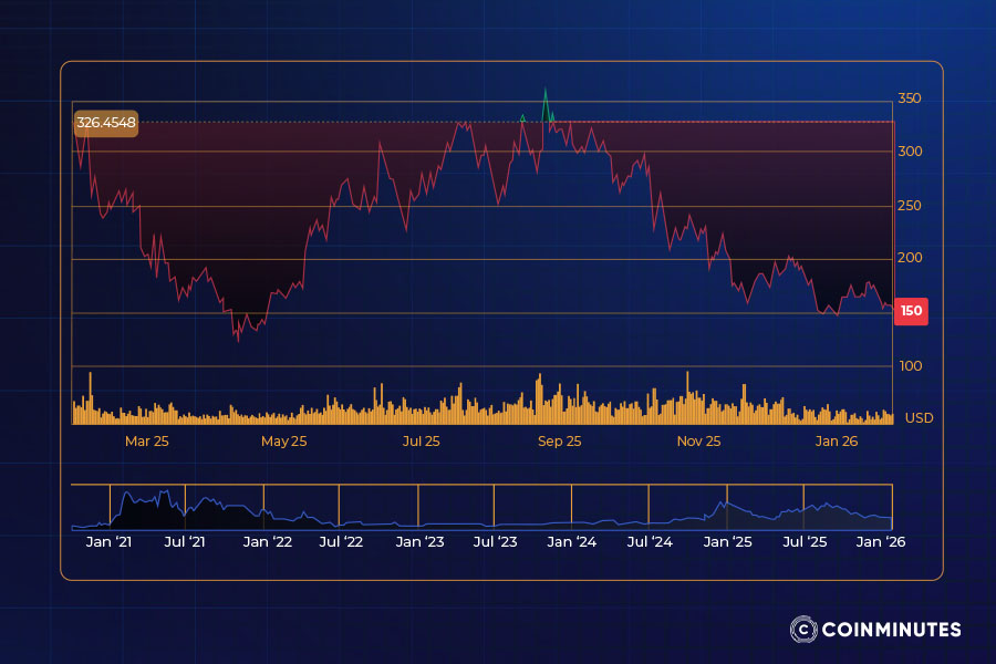 Falling back toward the $155–$165 area remains possible if governance friction resurfaces or broader market conditions tighten, though a sustained break below $157 would be required to shift the core outlook.