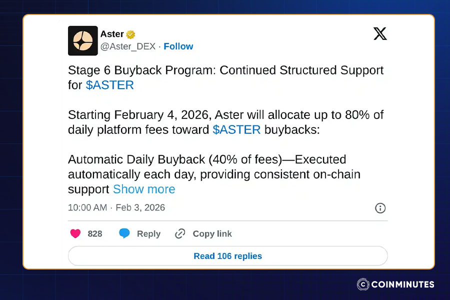 February 4, 2026, saw Aster launch its Stage 6 Buyback system without prior delay. A notable change now shapes its economic model, responding to ongoing market softness. Rather than spreading resources thin, the framework directs as much as 80% of each day's collected fees into buying back ASTER tokens live from exchanges. This approach alters capital flow, placing emphasis on active recovery instead of passive accumulation.