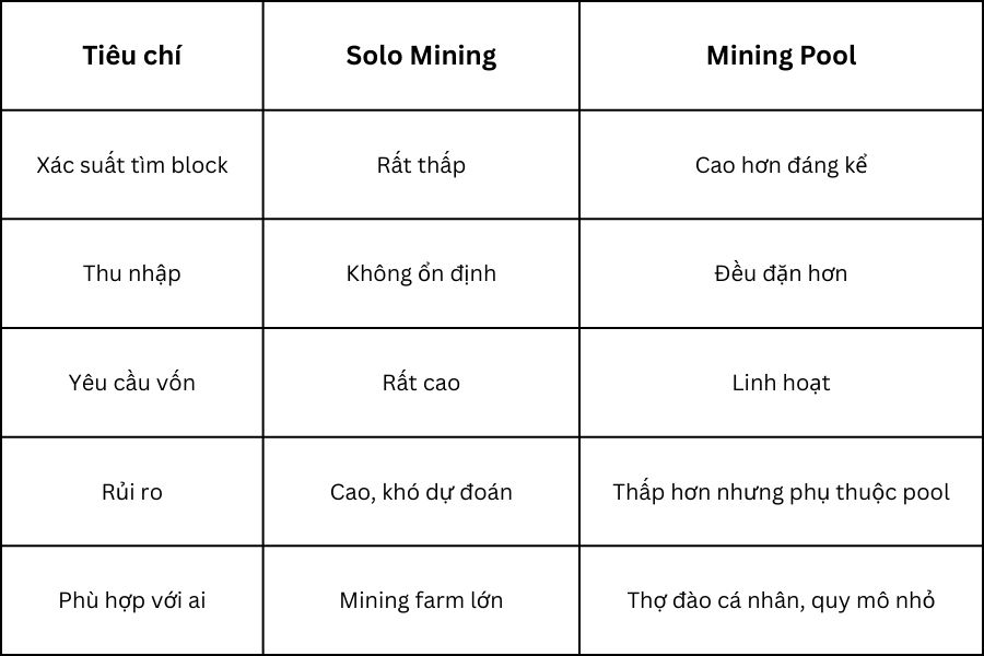 Phù hợp: Miner kiên trì, chấp nhận thu nhập biến động theo từng ngày.