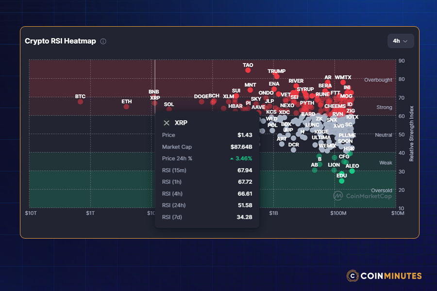 At $1.3363, analysts see a line in the sand. If XRP stays above that area of support, it is expected to enter a reasonable consolidation phase at the $1.34 to $1.45 range. A break through that support could lead to a liquidation flush for XRP, where prices may possibly fall back into the $1.20-$1.30 area due to forced selling of leverage longs.