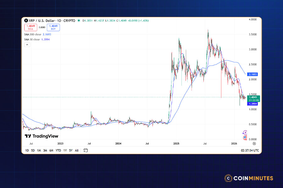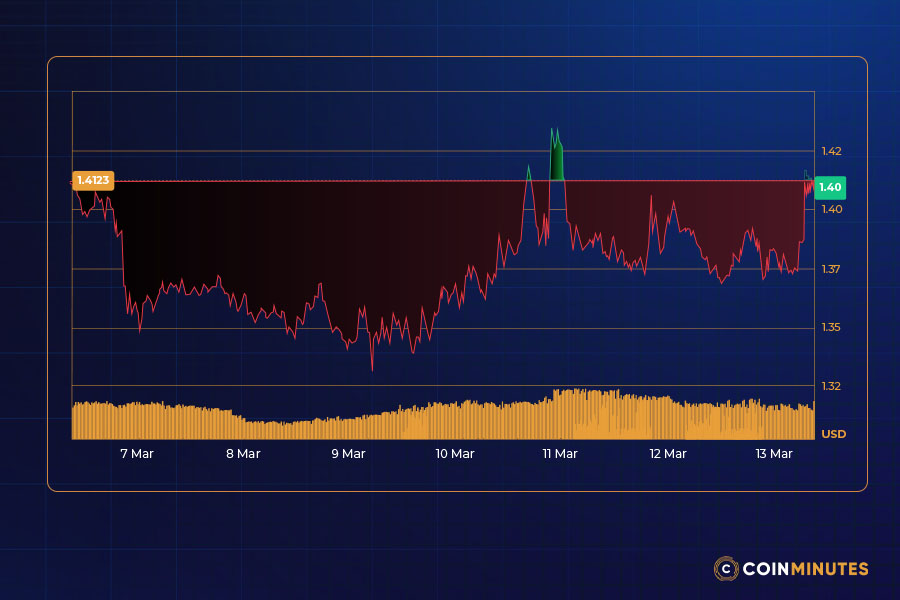 The 30-Day SMA ($1.40) is the mid-term trend indicator